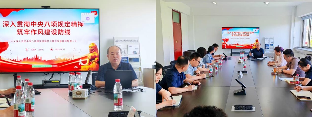 6月30日,北京建機院黨委書記、董事長兼總經理宮劍飛以《深入貫徹落實中央八項規定精神,以優良作風推進北京建機院高質量發展》為主題講授專題黨課。黨課回顧黨的作風建設的歷史脈絡與黨內教育實踐寶貴經驗,重點學習習近平總書記關于黨的作風建設的重要論述,逐條解讀《中國建筑科學研究院有限公司關于嚴禁違規吃喝的十條規定》。宮劍飛指出,當前北京建機院正處于創新突破關鍵時期,一要以上率下、示范帶動,領導干部要堅持帶頭做、帶頭抓,堅定不移地將作風建設的各項要求落到實處;二要久久為功、建章立制,以梳理出的問題清單為靶向改進工作,以制度建設固化作風建設成果,推動作風建設常態化長效化;三要涵育廉潔文化,將好作風轉化為生產力,以嚴明的紀律、務實的作風、昂揚的斗志投身工作。